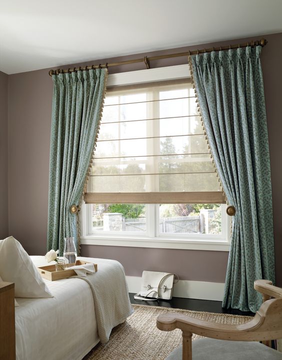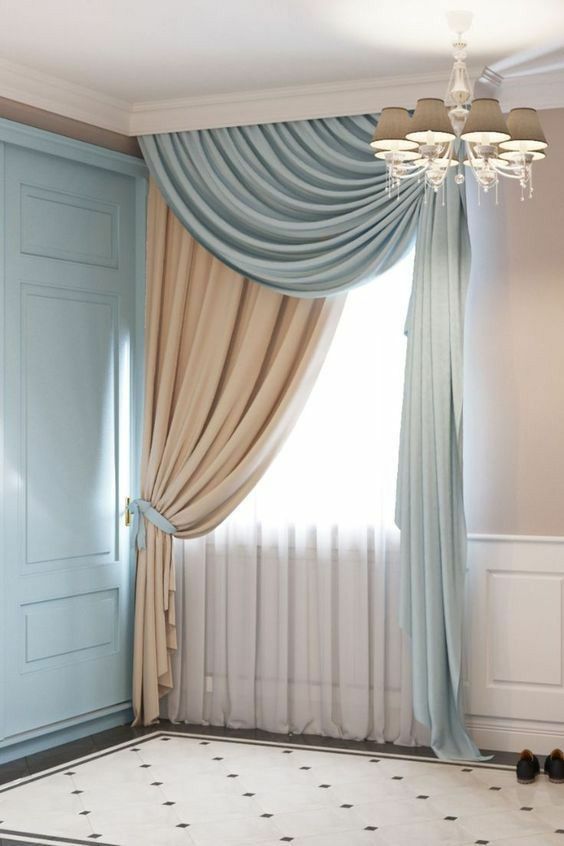 This combination is classic and comfortable. Tulle or voile curtains soften the light but let it in the room so you do not have to draw them aside during the day. Sheer curtains can be combined with roller blinds, Venetian blinds or side curtains can be added.