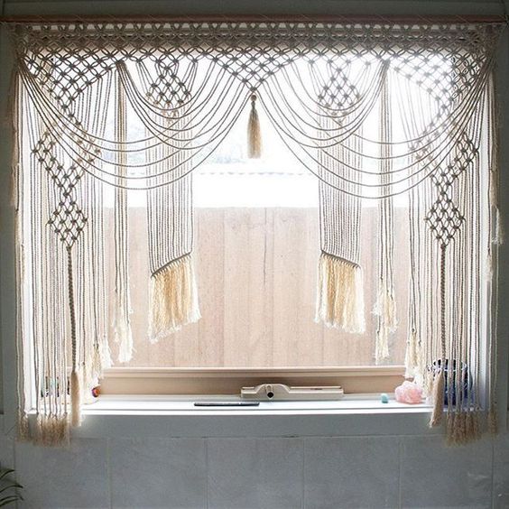 Macramé curtains are made by hand. They are made from hemp, cotton, jute and linen. Macrame curtains can be used in bedrooms, living rooms and kitchens, as well as bathrooms if you want a more natural look. Macrame curtains are also easy to make yourself!