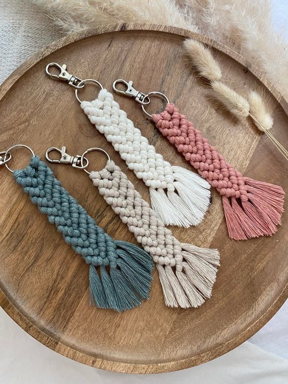 For example, how about a macramé keyring, a basket for hanging flowerpots, a wall hanging or a wristband? Macramé can also be used to make jewellery, such as necklaces and bracelets. For example, you can use macramé to make tablecloths, cushions, light fittings, curtains, rugs, toys and even dog collars. The possibilities are endless and the only limit is your own creativity.