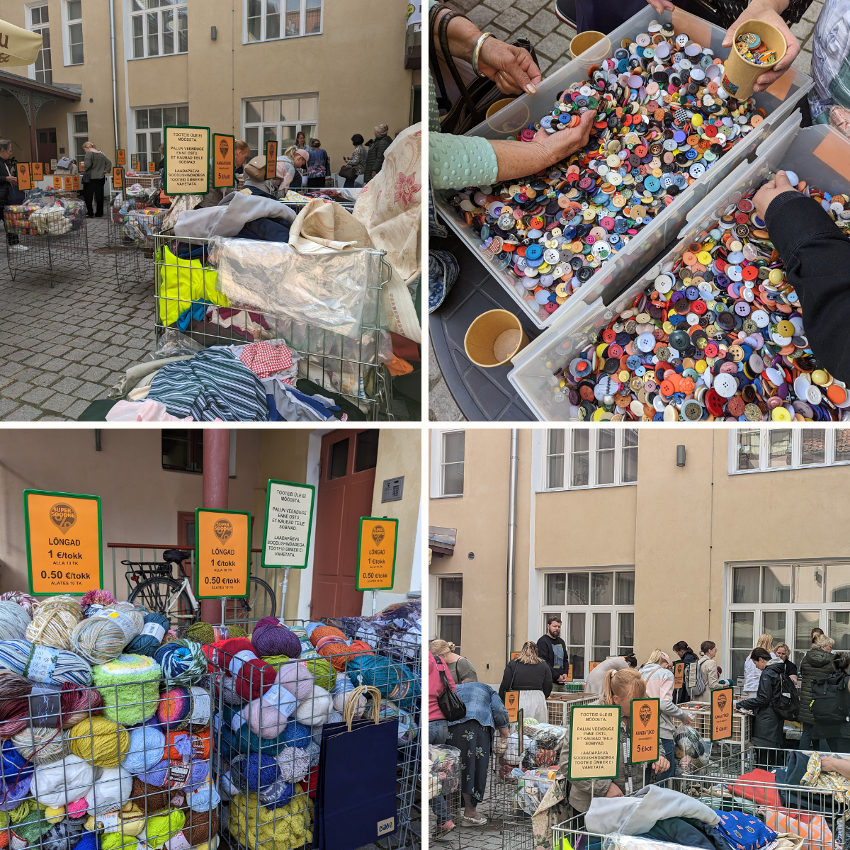 Laadapäeval on väljas suur valik kaalukangaid, paelu, nööpe, lõnga ja palju teisi tarvilikke materjale. Hinnda algavad juba 0,10 €-st.
