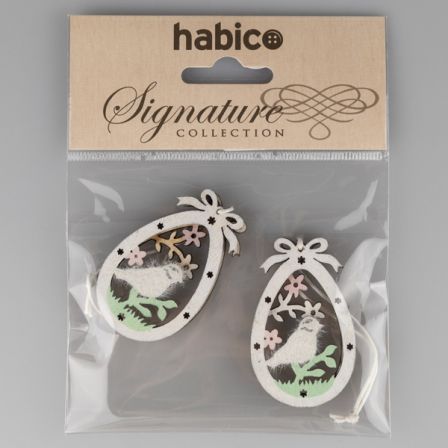 Pakis on 2 toredat puidust 3D muna linnukesega, mille saad riputada nt pajuokstele. Muna mõõt 37 x 60 mm