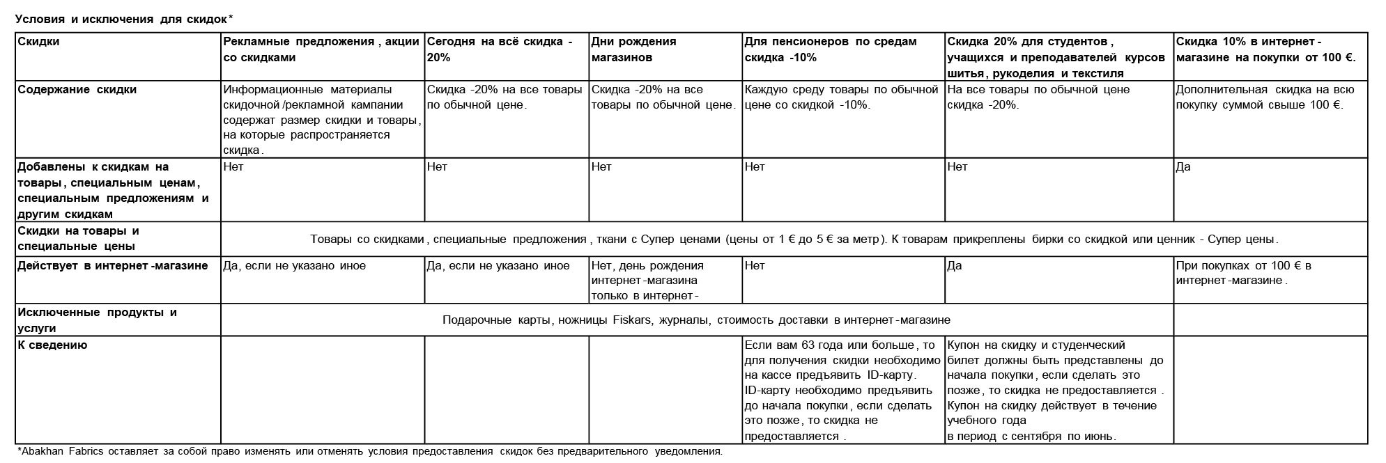 1.1 Общие условия действуют относительно правовых отношений, возникающих между Продавцом AS Abakhan Fabrics Eesti (Рег. номер 10396312, адрес Rüütli 11, Тарту 51007, Эстония, тел. +372 502 2300, электронная почта: info@abakhan.ee, далее Продавец), и заказчиком (далее Заказчик) при покупке товаров посредством Интернет-магазина по адресу www.abakhan.ee (далее E-магазин).