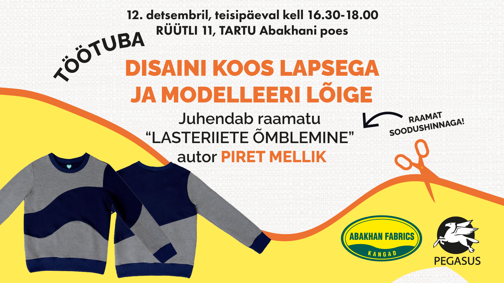 Liitu meie TASUTA töötoaga, kus saad koos oma lapsega luua vahva disaini pusale või t-särgile ning Piret Melliku juhendamisel enda disainist lõiget modelleerida (laps ei pea kaasas olema, võib tulla ka lapse tehtud joonisega).