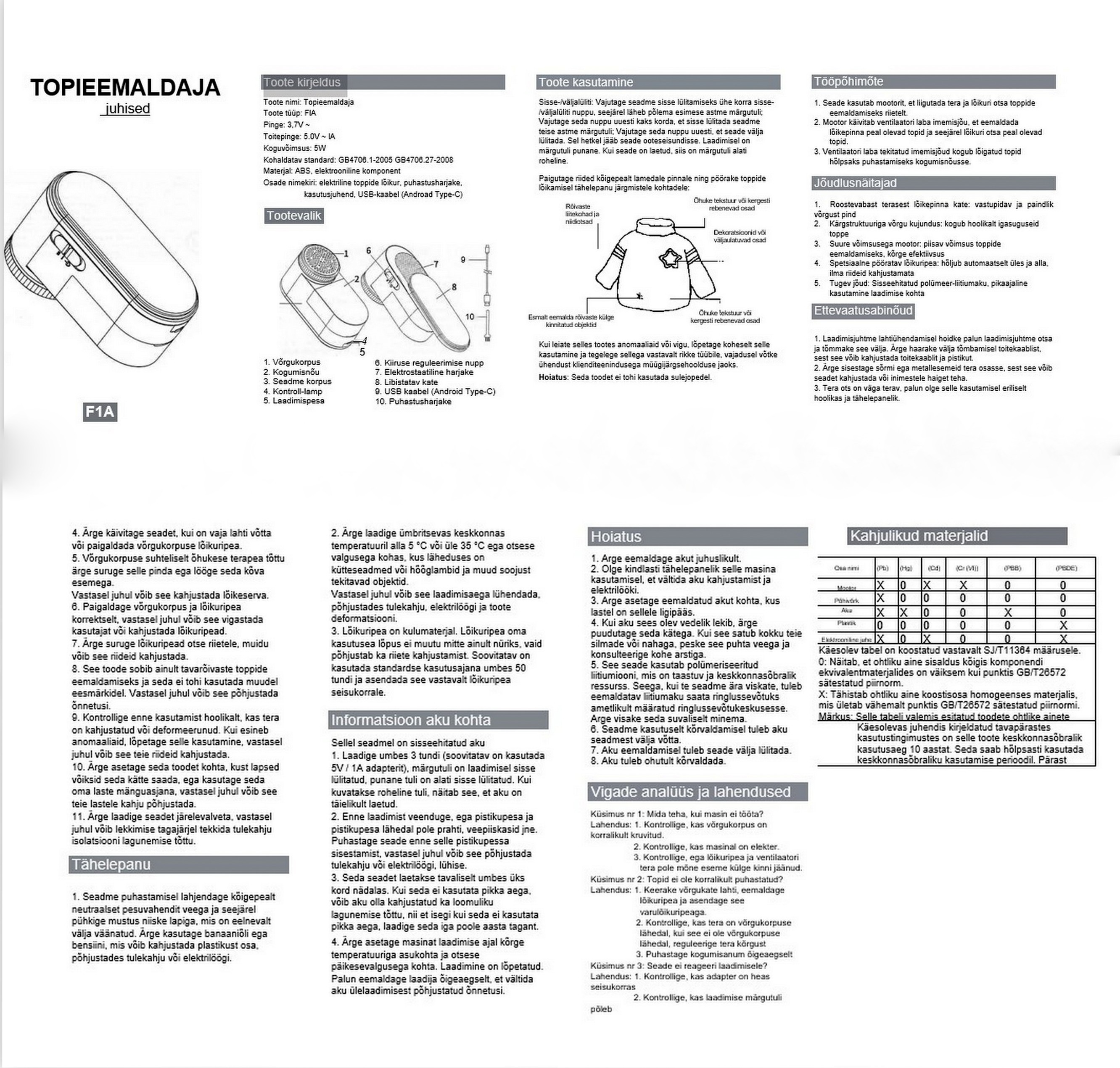 Ainult koduseks kasutamiseks, puhastada ainult väljalülitatud toodet. Mitte pesta, hoida kuivas. Terapea on kulumiskindel ja sellele garantii ei laiene